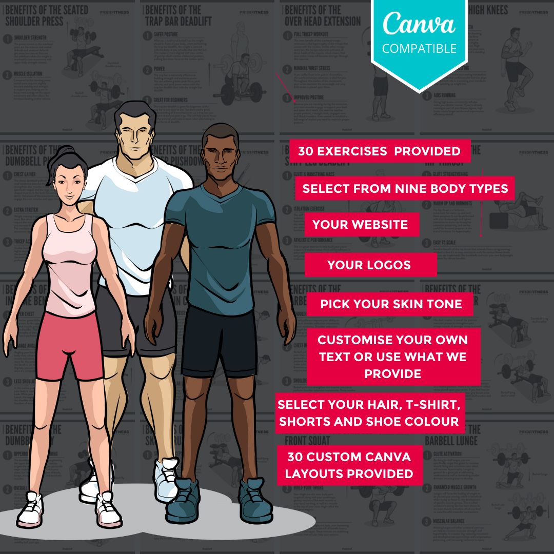 - Fully Customisable written instructions for each exercise in the pack.