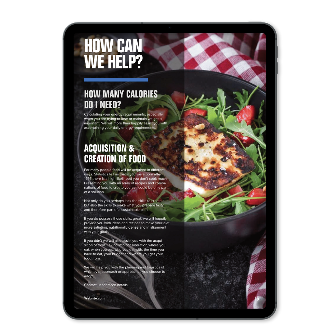 The Welcome Pack includes much of the content you will find in our lead capture assets,  Eating Out, Calorie and Cooking Skills Guides. It is intended as a client document, not as a piece of lead capture.